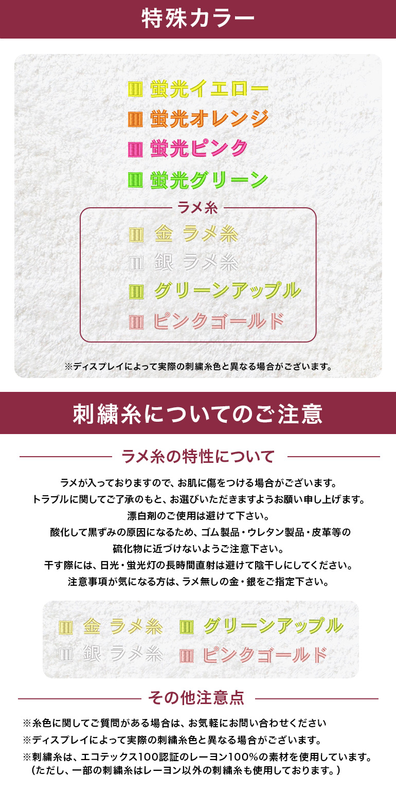 この商品の平均評価: 商品詳細画像 ![]() ![]() ![]() ![]() 刺繍加工詳細 ![]() ![]() ![]() ![]() ![]() ![]() ![]()