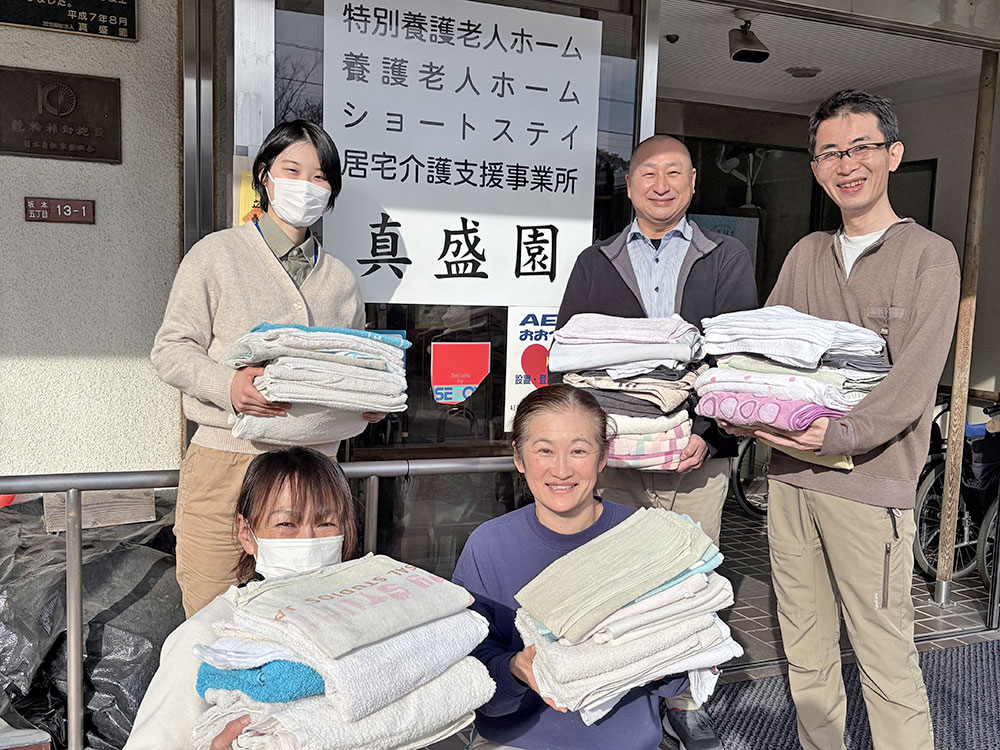 タオルのリユースタオルはまかせたろ.comでのリユース活動への取り組み ![]() タオルはどこまでも愛される商品でありたい。 当サイト【タオルはまかせたろ.com】をご利用いただきまして、本当にありがとうございます。 ![]() いろいろなリユースタオルの輪が広がってます! 近江牛の酪農家さんでもすごく喜んで下さってます。命の誕生に大活躍。 ![]() 平成24年大分県日田市 日田市観光協局さんから依頼で豪雨による被害における支援として皆さまのリユースタオルをご希望され発送させていただきました。 ![]() 平成26年広島県安佐北、安佐南の社会福祉協議会を通じて広島土砂災害の被害における支援として皆さまのリユースタオルを発送させていただきました。 ![]() 平成27年栃木県の社会福祉協議会を通じて栃木土砂災害の被害における支援として皆さまのリユースタオルを発送させていただきました。 そのリユース活動をNHKさまに取り上げて頂きました。 平成28年熊本県、大分県の地震災害の被害における支援として皆さまのリユースタオルを発送させていただきました。 介護施設における支援物資として皆さまのリユースタオルを活用いただいております。 ![]() 動物による保護犬・保護猫活動支援団体さんへ支援物資として皆さまのリユースタオルを活用いただいております。 一般社団法人アニマルハートレスキューさんホームページ 株式会社ネコリパブリックさんホームページ ![]() ケアタウン唐崎様 「大切にご利用させていただきます!」と喜んでいただきました。 ![]() サンクスラボ様の珊瑚チームの皆さんにもご活用いただいております。 ![]() 社会福祉法人真盛園の皆さんにもご活用いただいております。 ●当サイトのお買上いただき、不要となりましたタオルは下記住所まで送付くださいませ。 お客様データーベースにて管理しておりますので、商品ご購入履歴が無い場合はお断りするケースがございます。 予めご了承くださいませ。 〒520-0106 滋賀県大津市唐崎1-26-8 (株)京都工芸 リユース係 TEL:077-579-6662 Mail:makasete@makasetaro.com ●リユースタオルを是非、希望されます企業様 はご連絡いただきましたら、ご相談に応じます。 お届けに発生する発送送料などは当社が負担いたします。 〒520-0106 滋賀県大津市唐崎1-26-8 (株)京都工芸 リユース係 TEL:077-579-6662 Mail:makasete@makasetaro.com |
